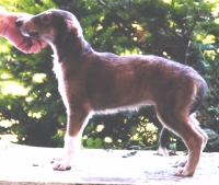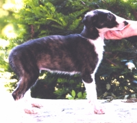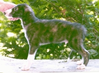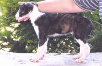 There are 7 puppies, 3 males, 4 females. In some cases I have put up pictures of both sides of a pup. The pups are as follows: Red male, Black with brindle points male, Brindle male, Red female, Black and tan female, Brindle female, Sabled cream female.
